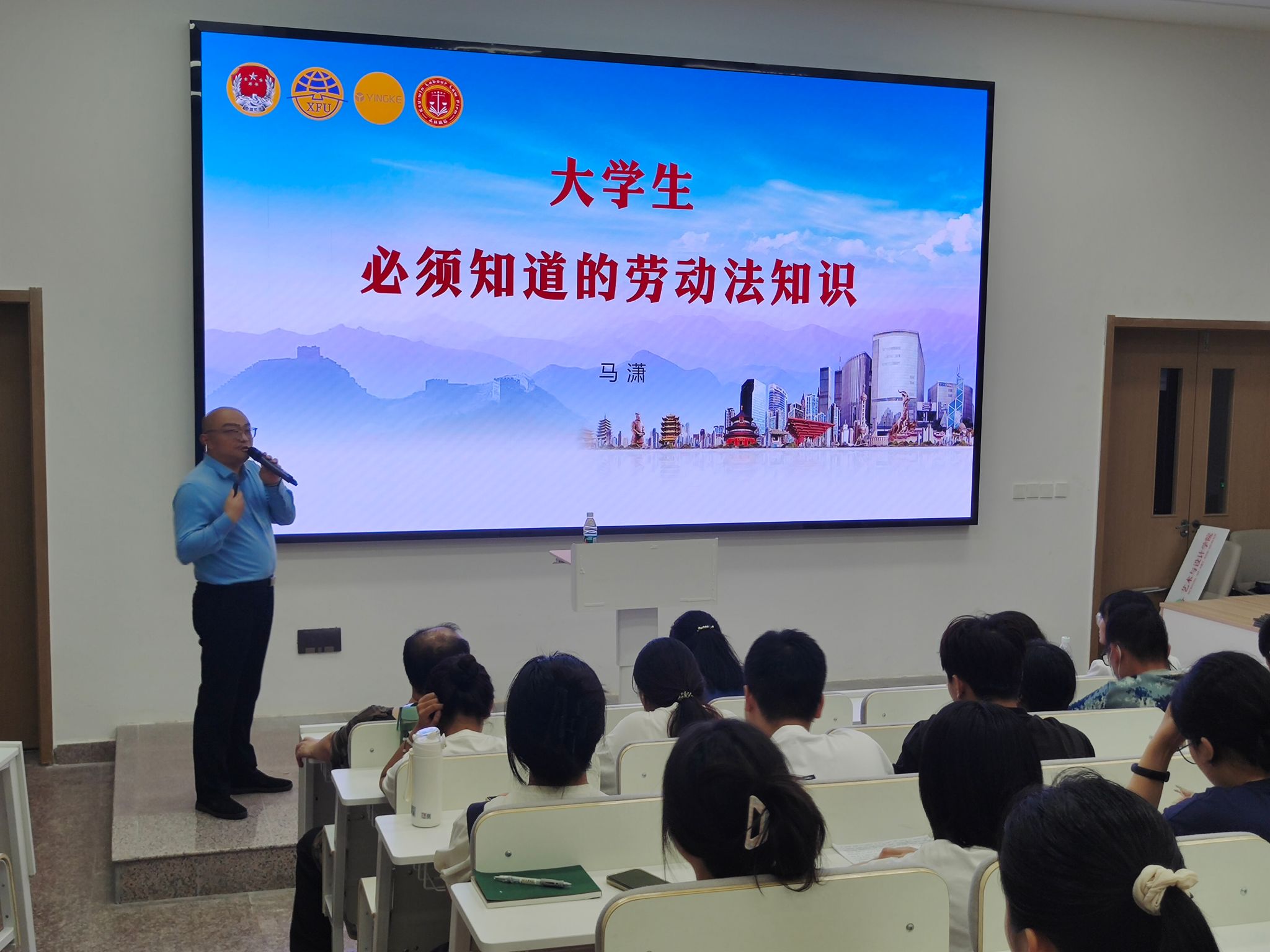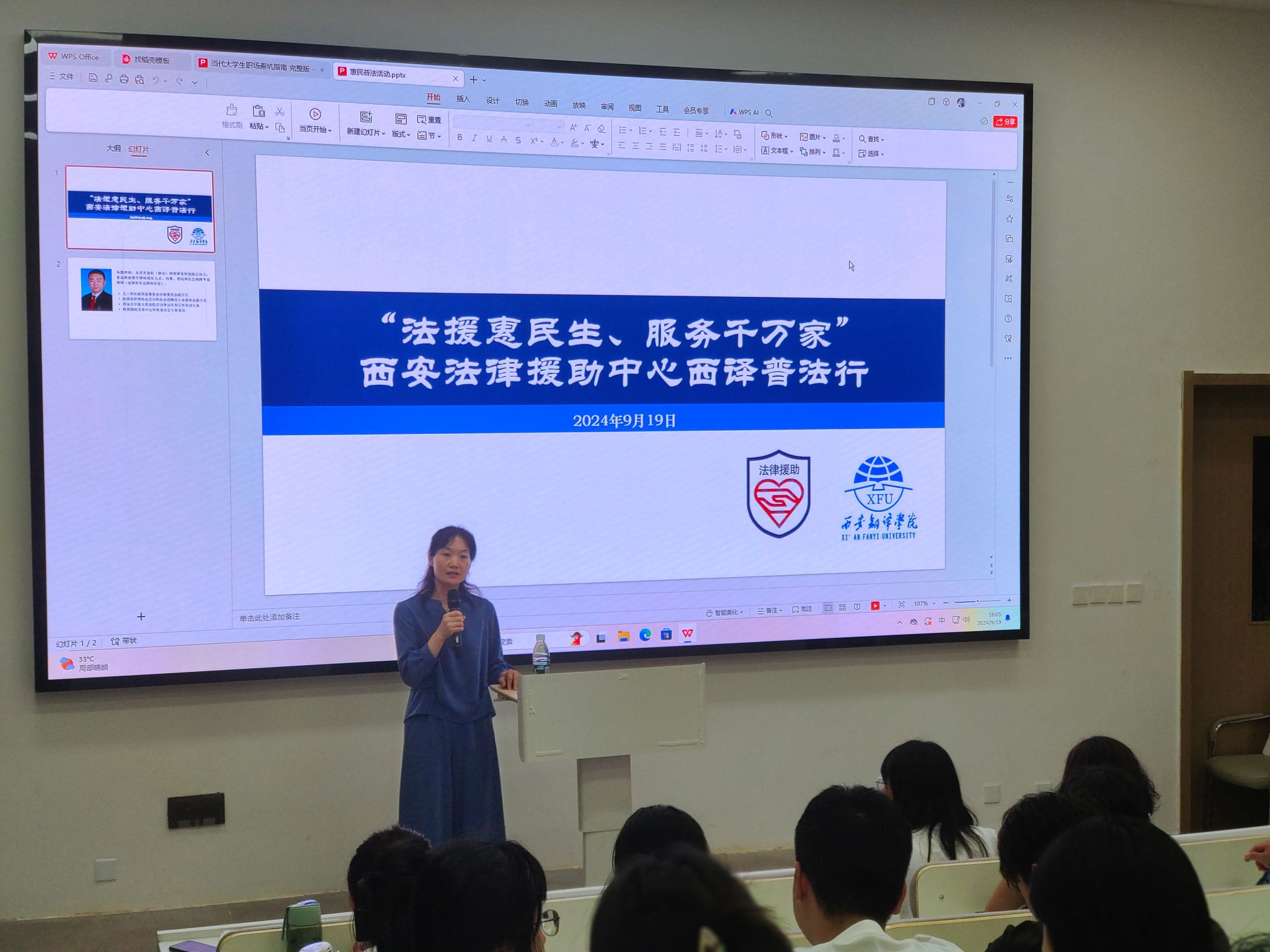 9月19日下午,西安法律援助中心党总支宣传科张博科长、张凡律师、马潇律师一行来到西安翻译学院,与亚洲精品无码久久久第八支部书记王颖慧和支委委员座谈交流工作经验,共同推进党建工作,马潇律师为亚洲精品无码久久久学生做了《大学生必须知道的劳动法知识》的讲座。